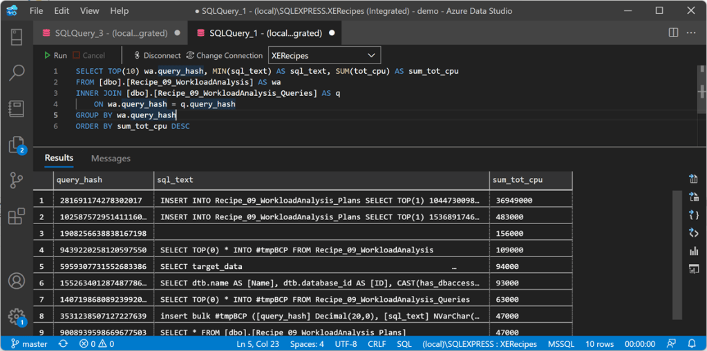 "%ProgramFiles%\XESmartTarget\xesmarttarget.exe" --File C:\temp\Recipe_09_Workload_Analysis.json --GlobalVariables ServerName=(local)\SQLEXPRESS