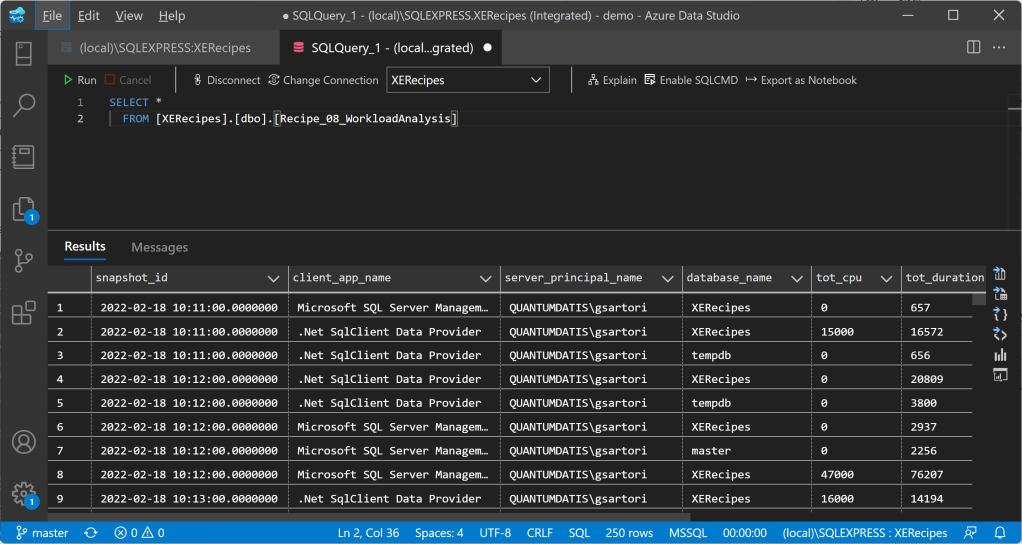 In the next recipe we will see how to take GroupedTableAppenderResponse to the next level and simulate what Query Store does (especially useful if you’re not on 2016 or later). Keep an eye on the XESmartTarget tag!