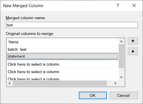 In the next dialog you can select which columns to merge. In this case you want to merge batch_text and statement: