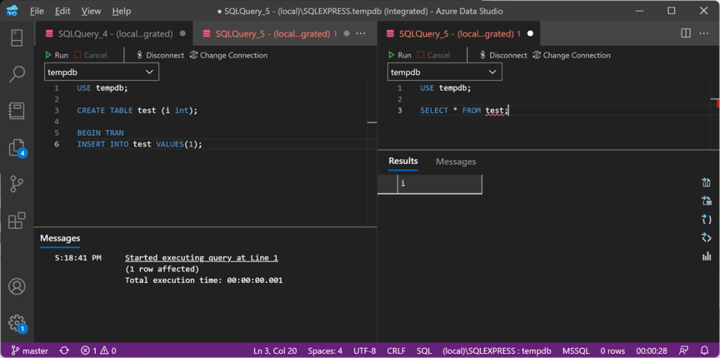 Querying the target table, you can see that the “sql” column contains data from both events, achieving the same result as the merged column in SSMS: