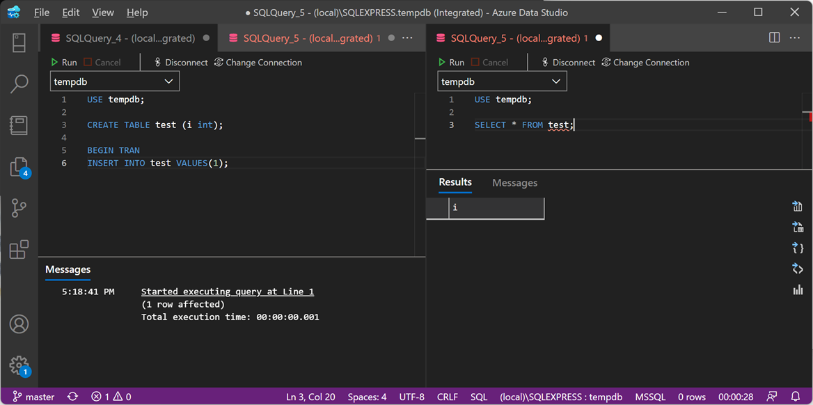 Let’s check what happens if you run some commands from Azure Data Studio: