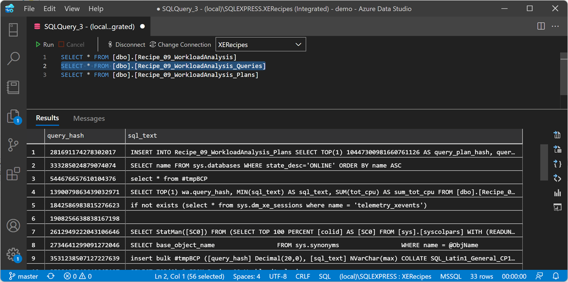 This time, you want capture all the queries executing on your server and save the Extended Events data to a table in SQL Server. One of the things you cannot achieve easily with the standard targets in Extended Events is writing to a database table. If you check the documentation and all the blogs that you find on the Internet, all of them recommend using two possible methods to extract the information from the session: